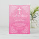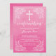 Notre belle invitation de confirmation d'aquarelle moderne comprend un cadre de défilement vintage, une croix blanche et une police de confirmation chic et sophistiquée sur un arrière - plan d'aquarelle rose populaire. Retournez notre invitation de confirmation sur pour voir un retour correspondant pour une touche spéciale supplémentaire. Une invitation parfaite pour une confirmation de fille Visitez notre boutique pour cette invitation dans une large sélection de couleurs modernes et tendance.