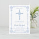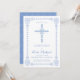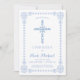 Cette invitation de confirmation élégante et classique présente une croix dessinée de bleus et de blancs avec une bordure détaillée correspondante. Parfait pour vos fêtes religieuses spéciales, le texte et la couleur arrière - plan peuvent être customisés à votre goût.
