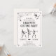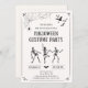 Invitation vos invités ghoulish dans le style avec cette invitation fantaisiste et dessinée à la main pour la fête d'Halloween, avec trois squelettes dansants amusants et une bordure de style rétro. Cette charmante oeuvre peinte à la main comprend des chauves-souris éffrayantes, une toile d'araignée avec une araignée pendante, et une typographie joueuse d'inspiration vintage, parfaite pour une fête d'Halloween ludique et légère. A la fois drôle et festive, cette invitation mêle détails dessinés à la main avec une touche de vintage allure. Il est idéal pour toute personne qui planifie une soirée costumée pleine de personnalité. Les squelettes illustrés et le cadre de style doodle ajoutent une ambiance artistique unique qui fera ressortir votre invitation.