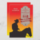 La silhouette d'un cowboy contre un ciel de coucher du soleil crée cette carte belle. Le panneau de mot peut être traîné à n'importe quel emplacement, rendu plus grand ou plus petit (+-) ou éliminé faisant à ceci une invitation souple.