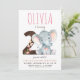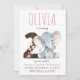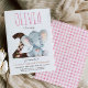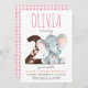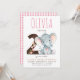 Cet invitation présente un éléphant rose pour une fête d'anniversaire. Le dos de l'invitation a un motif rose en vichy. Personnalisez l'invitation avec vos détails et vous avez les options pour acheter des invitations imprimées ou un téléchargement numérique.