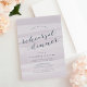 Cette invitation de dîner de répétition élégante et moderne à l'aquarelle présente un fond de lavis à l'aquarelle dans des tons de lilas gris, accentué de calligraphie chic et de lettrage serif en ardoise poussiéreuse. Les articles coordonnés sont disponibles dans notre collection Chiffon.