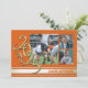 Annonce de graduation en or avec rayure universitaire et triple photo pour la promotion 2025 en orange et or.