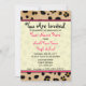 Une invitation à la remise de diplômes avec un arrière - plan empreinte de léopard à l'avant et à l'arrière. Texte rose et noir et garniture rose. A l'opposé, le texte "Class of 2011" est placé en cercle rose avec l'illustration du casquette de graduation noir.
