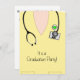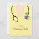 Invitations de la fête de graduation en infirmière Jaune Scrub Top Design avec un stéthoscope noir réaliste en style 3D. Retour de l'invitation en coordonnant les couleurs et est entièrement personnalisable.