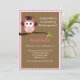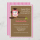 Qui est diplômé ??? Cette invitation est parfaite pour obtenir un diplôme d'études préscolaires ou de maternelle. Il est au centre marron avec une bordure rayée rose autour. Il y a un mignon hibou rose portant un casquette sur le côté gauche de cet invitation assis sur une branche d'un arbre. Personnalisez-vous avec les informations de la fête et vous êtes prêt à partir. Découvrez nos nombreux autres designs et impressions dans notre magasin. ©babystar