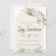 Célébrez votre petit bout avec cette invitation de douche bohème avec fleurs et herbe de pampa ! L'herbe de pampa et un arrangement floral et d'eucalyptus contribuent à créer un look rustique et sophistiqué qui est parfait pour votre révélation de sexe, douche de bébé ou douche de mariée. La palette de couleurs neutres de beige, vert et blanc aide à rendre cette invitation idéale pour les fêtes et révélations de sexe neutre. La combinaison de texte cursif et traditionnel rassemble le look pour un sentiment à la fois unique et vintage !