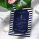Customisez cet élégant Nautical moderne Nautical Shower Invitation. Design rayé bleu et blanc avec bleu foncé, mis comme un modèle pour une personnalisation facile. Vous trouverez ci-dessous des liens vers un Faire-part de mariage et un RSVP correspondants, des cartes de programme, un dîner de répétition, une carte de direction et des cartes d'étiquette de Merci et des autocollants de préférence. Également disponible en blanc.