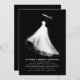 Ces invitations à la douche nuptiale captent magnifiquement l'essence des émotions de la mariée et l'esprit romantique du mariage. Le design noir et blanc est élégant et minimaliste, avec une silhouette gracieuse de la mariée dans une superbe robe blanche mariage.
