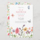 Cette belle et élégante invitation à la douche nuptiale offre une belle combinaison de fleurs sauvages d'aquarelle. Le dos de la carte présente un magnifique motif floral. Personnalisez avec vos propres détails uniques.