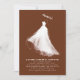 Ces invitations à des douches nuptiales sont une véritable incarnation des émotions de la mariée et du charme enchanteur de son prochain mariage. Le design est un chef-d'oeuvre de l'élégance et du minimalisme, mettant en valeur la silhouette de la mariée dans une robe mariage blanche à couper le souffle. Ce récit visuel évoque une ambiance romantique et éthérée, attisant un sentiment de nostalgie. L'illustration est réalisée à l'aide de brosses artistiquement rugueuses qui fusionnent dans un fond de terre cuite profonde, enrichissant encore l'attrait visuel du design. En établissant un équilibre entre simplicité et profondeur, le design en dit long sur la grâce de la mariée et sur l'élégance du mariage, en s'assurant que les invitations laissent une marque indélébile sur le coeur des récipiendaires. Cet invitation non seulement annonce un événement, mais raconte aussi une histoire d'amour, d'anticipation, et le voyage dans un nouveau chapitre de la vie, ce qui en fait un prélude inoubliable à la célébration mariage.