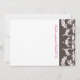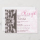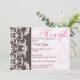 Rose sur brun et Blanc sur invitation damassée rose.
