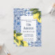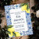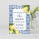 Le meilleur est à venir avec cette invitation de douche thématique en porcelaine bleue et citron ! Un cadre de porcelaine bleue vintage et de plants de citron entoure un texte amusant et féminin pour un look qui convient à votre prochaine douche de mariage, douche de bébé ou fête prénatale ! Cette invitation est la combinaison parfaite de vintage, rustique et moderne avec son cadre de style porcelaine espagnole bleue et blanche complété par des citrons frais et ensoleillés, ce qui en fait l'ajout parfait à votre prochaine réception !