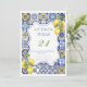 Transportez vos invités sur la magnifique côte amalfitaine avec cette magnifique invitation d'anniversaire au citron et au bleu ! Inspiré par le charme de Positano et Capri, ce design présente des citrons jaunes vibrants, des motifs bleus méditerranéens et des feuilles verdoyants, apportant un air d'élégance italienne à votre célébration.