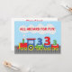 Joignez-vous à la fête d'anniversaire avec notre invitation colorée de 3ème anniversaire! Doté d'un train animé avec le numéro trois, il donne l'ambiance d'une fête joyeuse. Conçu dans des couleurs primaires vives, il est parfait pour la journée spéciale de votre enfant. Le message intérieur est plein d'excitation, invitant tous les jeunes aventuriers à la fête. Commandez maintenant et laissez la célébration commencer !
