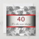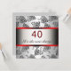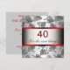 Invitation élégante et amusante de fête d'anniversaire des 40 ans pour femme, avec motif damas noir, argent et rouge. Personnalisez et personnalisez le verso avec le style de police et la couleur de police de votre choix, ainsi que la couleur de fond du verso.