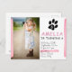 Invitation de fête d'anniversaire avec photo de patte rose mignonne pour enfants. Invitation d'anniversaire photo mignonne avec empreinte de patte noire, traits d'aquarelle rose et une photo - insérez votre photo dans le modèle. La RSVP est au verso de l'invitation. Personnalisez avec vos détails pour créer une invitation d'anniversaire personnalisée unique pour votre enfant.