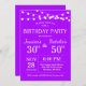 Invitation conjointe d'un adulte à la fête d'anniversaire. Coanniversaire de la fête combinée. Arrière - plan violet. Homme ou femme, garçon ou fille Anniversaire Invitation. Éclairage à cordes. 13ème 15ème 16ème 18ème 20ème 21ème 30ème 40ème 50ème 60ème 70ème 80ème 90ème 100ème, n'importe quel âge. Pour plus de personnalisation, cliquez sur le bouton "Customiser" et utilisez notre outil de conception pour modifier ce modèle.