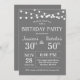 Invitation conjointe d'un adulte à la fête d'anniversaire. Coanniversaire de la fête combinée. Arrière - plan gris. Homme ou femme, garçon ou fille Anniversaire Invitation. Éclairage à cordes. 13ème 15ème 16ème 18ème 20ème 21ème 30ème 40ème 50ème 60ème 70ème 80ème 90ème 100ème, n'importe quel âge. Pour plus de personnalisation, cliquez sur le bouton "Customiser" et utilisez notre outil de conception pour modifier ce modèle.
