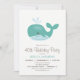 Invitation à la fête d'anniversaire de la baleine nautique. L'Invitation présente une baleine verte turquoise.