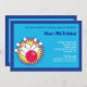 Invitation moderne et d'amusement de fête d'anniversaire avec un thème de bowling. Grand pour accueillir une fête d'anniversaire à un bowling. Goupilles de bowling de caractéristiques et une boule de bowling dans des couleurs lumineuses. Conception colorée avec un rétro regard.