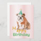Faites-vous plaisir avec notre chien taureau anglais dans une invitation de fête casquette Anniversaire fête. Un voeu d'anniversaire heureux et intemporel. Ajoutez vos propres mots avec vos propres informations personnalisées et faites ressortir votre célébration !