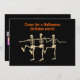Cette invitation drôle de fête d'anniversaire de Halloween a trois squelettes de bande dessinée sur l'avant. Ils dansent dans une ligne comme des squelettes de filles de choeur…. L'avant de l'invitation indique, "venu pour une fête d'anniversaire de Halloween."