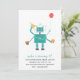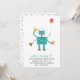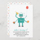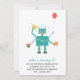 Invitation de fête d'anniversaire d'un enfant de thème de robot comportant un ballon, un petit gâteau, et un casquette de partie.