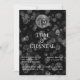 Une invitation d'anniversaire de mariage avec un fond noir et une centaine de bulles bokeh argentées flottant dans les airs, avec une bulle bokeh agrandie annonçant 'Cheers To 15 Years' en haut de la page. Vos prénoms avec une esperluette sont placés en dessous dans une police serif blanche vive avec les détails ci-dessous dans une petite police blanche lisible.