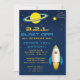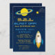 Cette invitation moderne de fête d'anniversaire de garçon de fusée d'outerspace d'amusement avec un bateau et une planète de fusée sur un arrière - plan de ciel rempli par étoile bleu-foncé est la parfaite pour n'importe quelle fête d'anniversaire ou événement spécial dans le style. Personnalisez avec votre propre texte spécial, et employez-le pour la partie ou l'événement de votre choix. Quelques graphiques par Prettygrafik conçoivent au magasin etsy.com/shop/Prettygrafikdesign