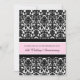 Carte d'invitation de fête d'anniversaire de mariage de 10 ans en élégant damassé floral moderne rose clair, noir et blanc, délicate et contemporaine. Personnalisable avec les détails de votre fête.