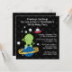 Cet invitation de fête d'anniversaire des garçons 5.25x5.25 a un thème mignon d'outerspace. Il y a un alien vert se tenant sur une ondulation de planète. Son vaisseau spatial et quelques étoiles sont à l'arrière-plan. Vous pouvez facilement customiser votre information de partie au dessus et au droit. Conceptions de Zenware de © de Copyright