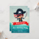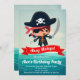 son invitation peut être l'invitation la plus courtoise de ce capitaine de pirate debout sur son bateau de pirates qui prend cette haute mer, avec une mer agitée conçue en turquoise et un ciel bleu marine montrant la carte des pirates et les étoiles et terminé avec une bannière rouge au sommet disant 'Ahoy Mateys'. Toutes vos informations de fête s'intègrent parfaitement dans les voiles pirates, pour donner à votre petit pirate la fête de ses rêves!