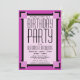Une invitation audacieuse pour fêter un anniversaire à envoyer à des amis et à la famille. Cette Invitation Géométrique Art Déco Violet peut être customisée avec le nom et les détails de la fête. Motif géométrique Art déco dans trois tons de violet et de noir.