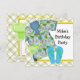 Chemise hawaïenne, tongs et margarita pour les hommes, invitations de fête d'anniversaire BBQ à la plage. Ce design de fête d'anniversaire sur le thème de la plage tropicale est idéal pour un BBQ décontracté, un luau, une fête d'été ! Ajoutez vos détails à l'avant et à l'arrière en choisissant simplement le bouton orange "Personnalisez-le !" pour commencer à ajouter les détails de votre événement, le style de police, la taille et la couleur de la police, ainsi que le libellé. Certains graphiques graphiques©delightful-doodles.