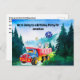 Carte postale d'invitation à la fête d'anniversaire, avec thème camion, pour un garçon de 3 ans. Le design est une aquarelle pittoresque avec des arbres, un camion, et des lapins mignons, dans le camion, et des ballons. Les mots peuvent être changés à la fois à l'avant et à l'intérieur. Si vous voulez juste changer le nom, il suffit de retirer Jonathan. Merci à Creative Fabrica, Design Cuts, et Pixabay pour certains des éléments du design.