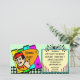 Les graphiques de cette carte incluent un juke-box d'inspiration rétro avec un disque vinyle et des notes musicales. Un panneau vintage avec un serveur de style années 50 vous accueille avec un texte personnalisable qui dit : "Surprise Party". Texte personnalisable supplémentaire pour personnaliser ceci pour votre propre événement !