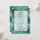 Une invitation de fête de bachelorette avec un motif coloré de plumes de paon exotiques et sauvages dans des teintes jolies de sarcelle, de vert émeraude, d'aqua et de bleu de cobalt. Artistique et élégant, créé avec des aquarelles. Un design chic et stylé.