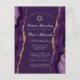 Une décoration en agate violette et or chic orne le côté de cette invitation de carte postale élégante pour la cérémonie de Bat Mitzvah et la fête. Le nom de votre fille est écrit en belle écriture cursive sous l'étoile de David. Un design moderne et tendance pour une jeune fille juive appelée au Torah.