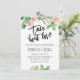 Invitation de fête de mariage rose pâle avec cactus floral et 'taco bout love'. Cette invitation de fête de couples pour mariage présente un titre en calligraphie noire au pinceau et une disposition de cactus fleuris rose pâle. Idéal pour quiconque recherche une invitation de mariage sur le thème des tacos.