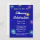 Une invitation à la célébration personnalisée avec des lettres de script et de bloc et l'art vintage élégant d'une lune brillante et colorée et des étoiles contre une gravure du ciel bleu. Customisez-le pour modifier les polices, ajouter votre logo, et plus encore, enregistrer votre conception pour plus tard.