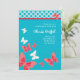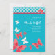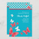 Invitation nuptiale à la mode de douche. Papillons de caractéristiques dans blanc et corail avec un arrière - plan de turquoise. L'amusement et les jeunes conçoivent, parfait pour une jeune mariée chic. Moderne et élégant. Ajoutez vos propres mots. Peut également être customisé pour une fête d'anniversaire.