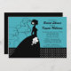 Commencez votre évènement avec notre mariée et mariée en silhouette branchée avec des pois noirs et blancs et une invitation à la douche nuptiale arrière - plan turquoise. customisez simplement notre invitation avec vos informations mariages et vous êtes tous prêts à partir. Disponible dans d'autres combinaisons de couleurs dans notre boutique www.celebrateitweddings.com. Consultez nos notes de remerciement, nos autocollants et nos boutons de fidélité dans notre boutique