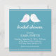 Une très jolie invitation à la douche nuptiale avec des inséparables modernes. La arrière - plan est turquoise et tout blanc pour donner à la douche un aspect très propre. Consultez www.zazzle.com/daisylin712 pour obtenir des faire-part de mariage, des rsvp et plus.