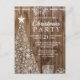 Invitation vos amis et votre famille à votre fête de vacances avec cette carte postale invitation de Noël en bois rustique. Ce design comporte une bordure blanche le long du dessus avec deux cloches. Il y a un arbre de Noël festif avec une étoile sur le dessus et deux boîtes-cadeaux décorées de rubans. Parfait pour vos festivités de vacances.