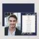 Avec de délicates feuilles de verdure à l'aquarelle sur fond bleu marine, cette invitation chic pour une fête de remise de diplôme de l'école de droit peut être personnalisée avec votre photo de diplômé et les détails de la célébration. Conçue par Thisisnotme©