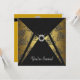 Cartes d'invitation de fête et d'événement à motif damas noir sur fond or avec une garniture noire et diamant. Ce modèle de conception convient bien comme invitation à une fête d'anniversaire, une soirée cocktail, une fête de vacances, un événement d'entreprise, un gala, une fête de retraite, une soirée du Nouvel An et toute autre occasion spéciale. Personnalisez avec votre choix de style de police et de couleur de police, ainsi que de couleur de fond.