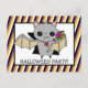 Invitation tes amis et ta famille à ta fête d'Halloween avec cette mignonne invitation d'Halloween avec une chauve-souris de dessin animé tenant des bonbons dans son aile.