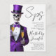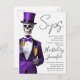 Élevez votre verre à l'élégance effrayante avec cette invitation de fête d'Halloween squelette en violet ! Avec un squelette élégant dans un smoking violet chic et un haut-de-forme tenant du champagne, ce design allie le charme gothique au glamour des soirées cocktail. Parfait pour les soirées d'Halloween classe, les fêtes costumées ou les rassemblements effrayants-chic. Personnalisez le texte avec vos propres détails d'événement et organisez une nuit de sophistication et de plaisir effrayants.