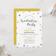 Cette invitation à la mode est idéale pour célébrer fièrement une obtention du diplôme de lycée, d'université ou d'université. Elle comporte les points de fête autour dans le gris et le jaune. La police cursive est moderne pourtant élégante. Cette conception unisexe est parfaite pour célébrer cette étape importante importante.
